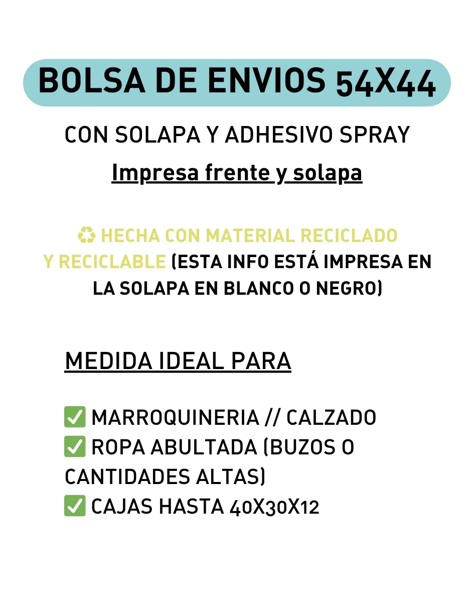 • 🔒 Adhesivo integrado PREMIUM: Cerrá fácil, sin cinta ni complicaciones.